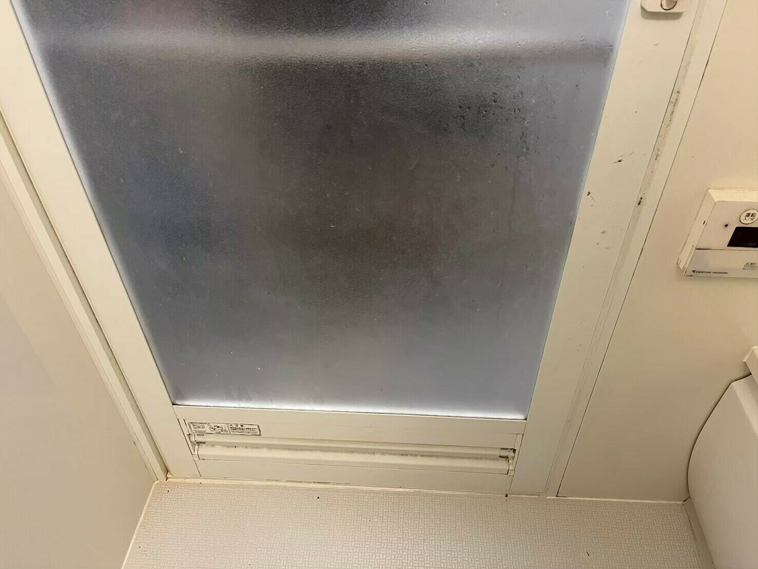 石鹼カス汚れやカルキ汚れ等で扉のガラス部分が白くなってしまっています💦