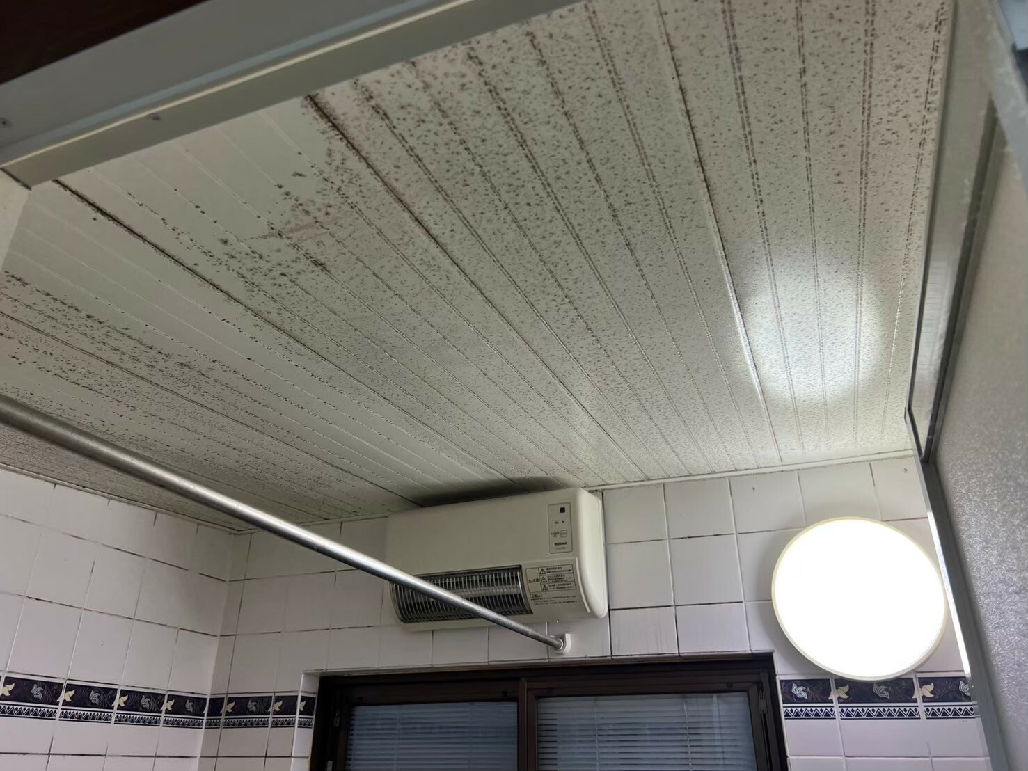 浴室の天井も黒カビ汚れでいっぱいです💦