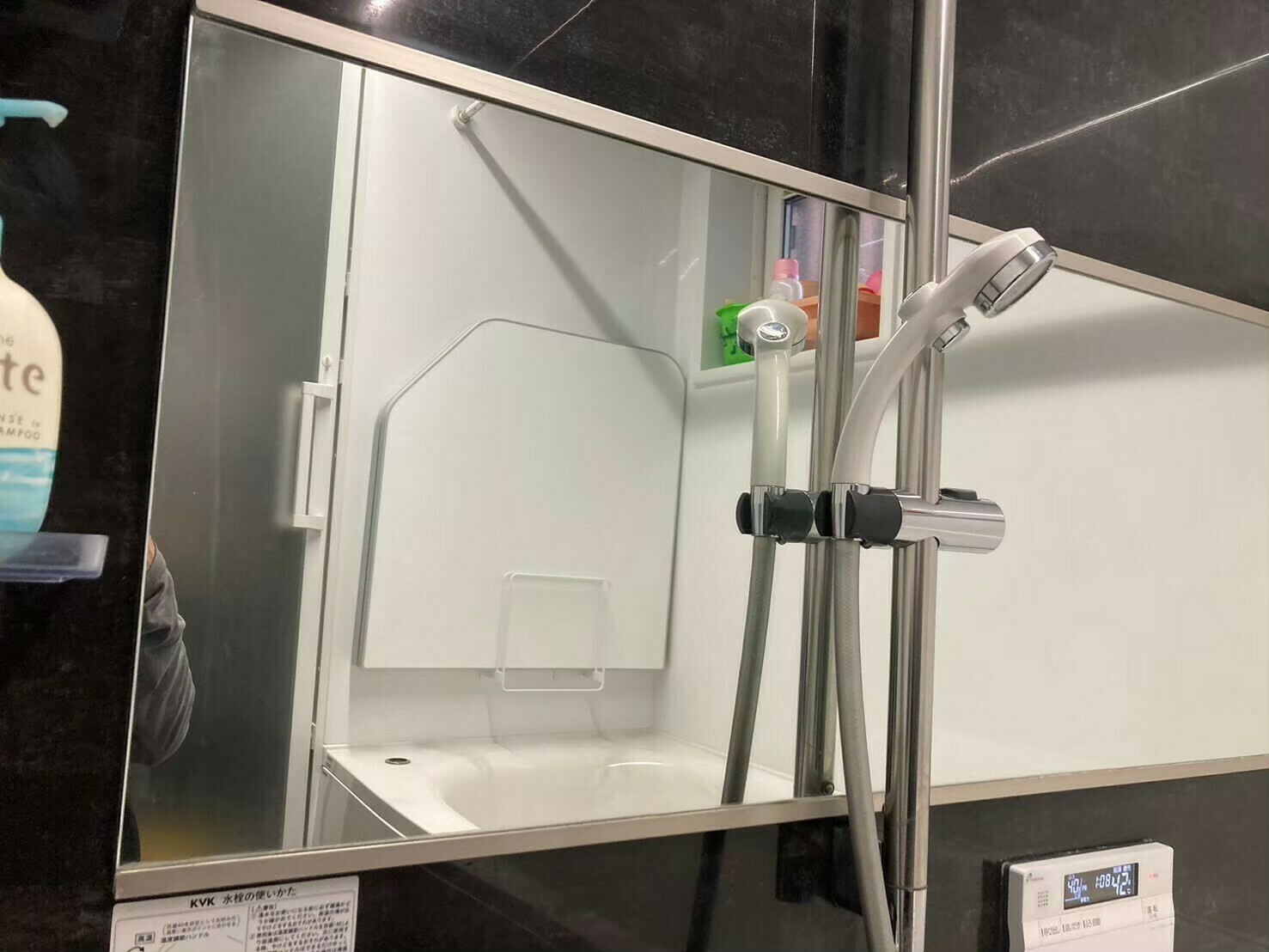 黒くてカッコイイ浴室なので、なんとか汚れを落としたいですよね…