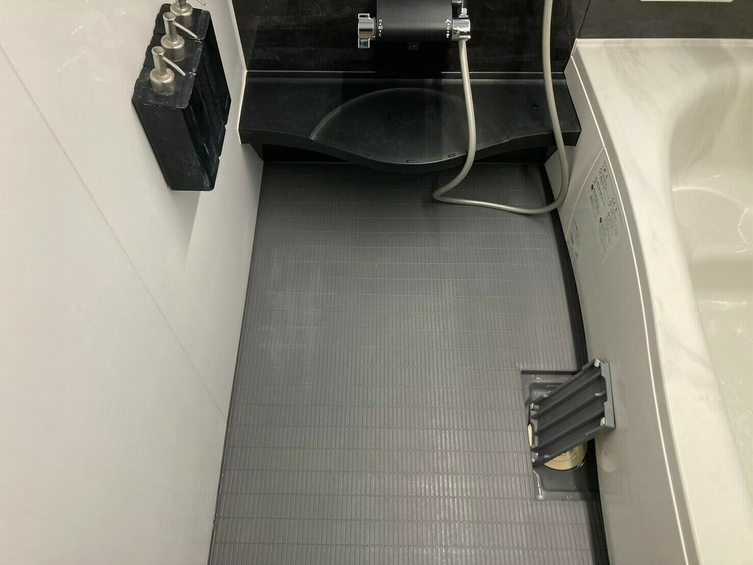 床には石鹼カス汚れがついていますね💦