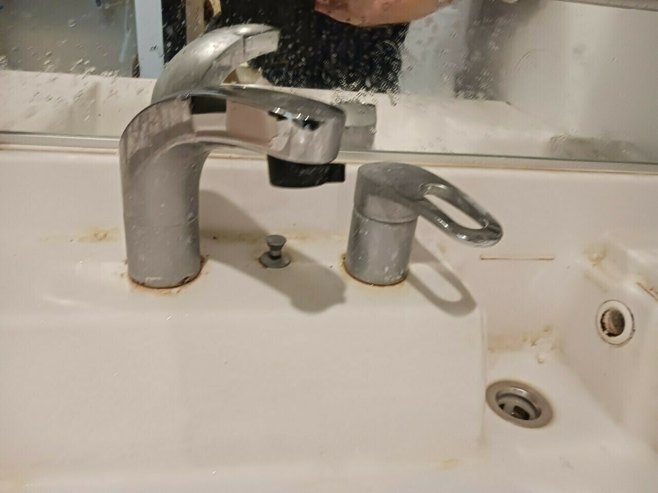 蛇口の下は、水垢汚れが溜まって茶色く変色してしまっています💦