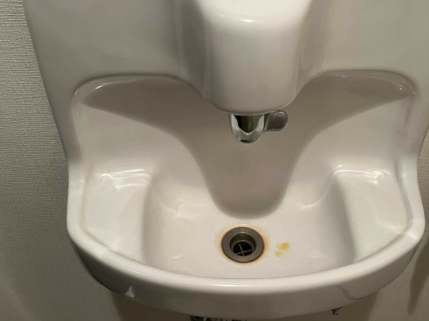 トイレ内の独立洗面台には、水垢汚れがついていますね💦