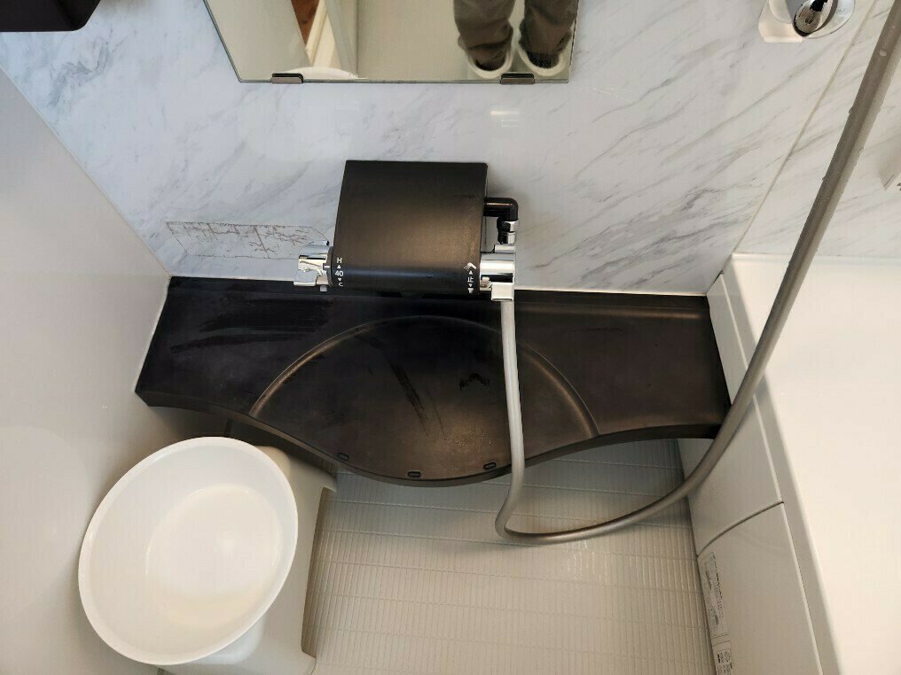 浴室のカウンターには石鹼カス汚れや物を置いていた跡が残っています💦