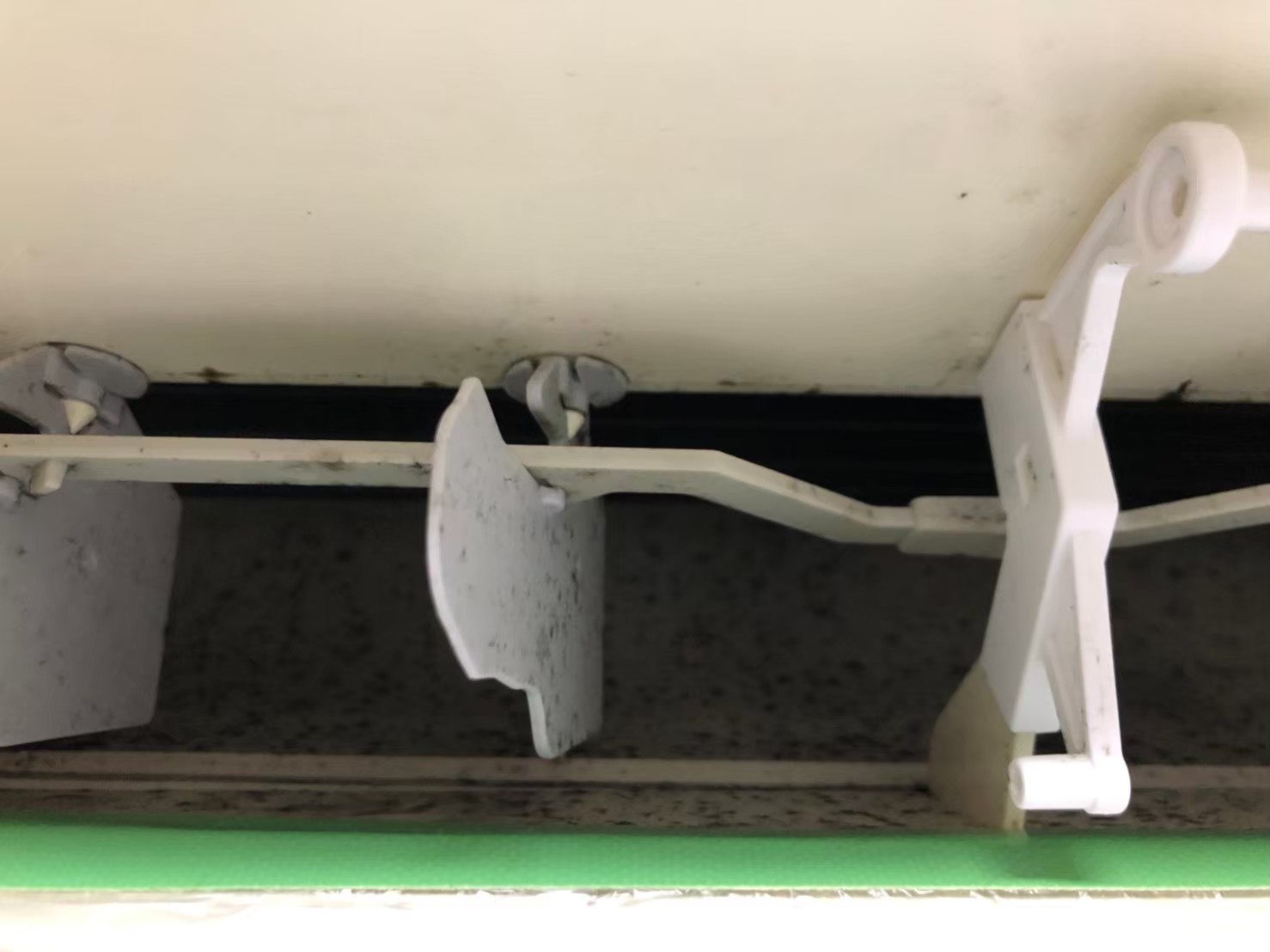 エアコンの手前から奥にかけて、ホコリやカビが付着していますね。