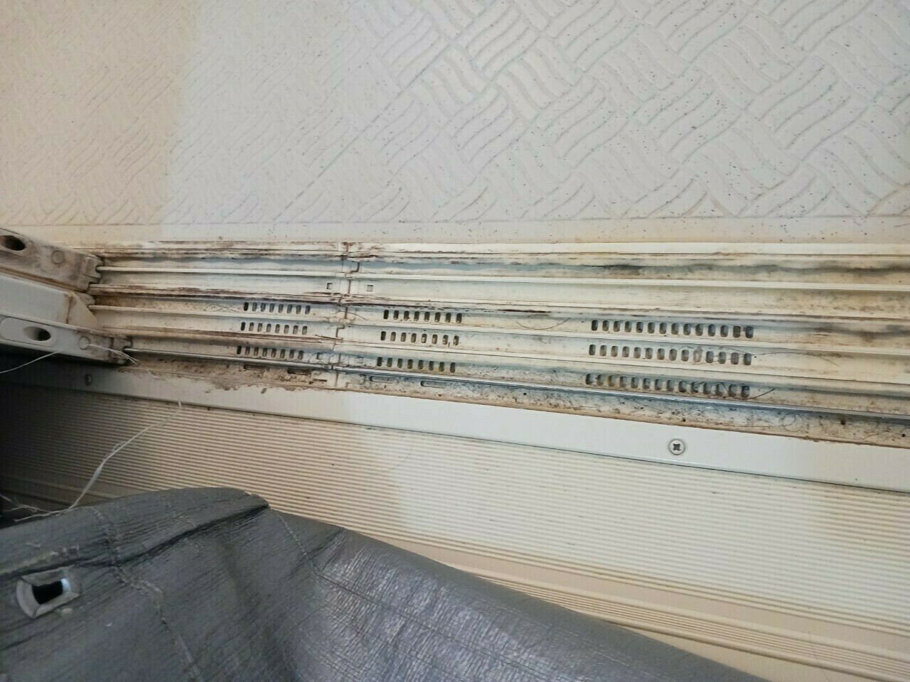先程の画像の反対側にも黒カビ汚れが続いています…😱