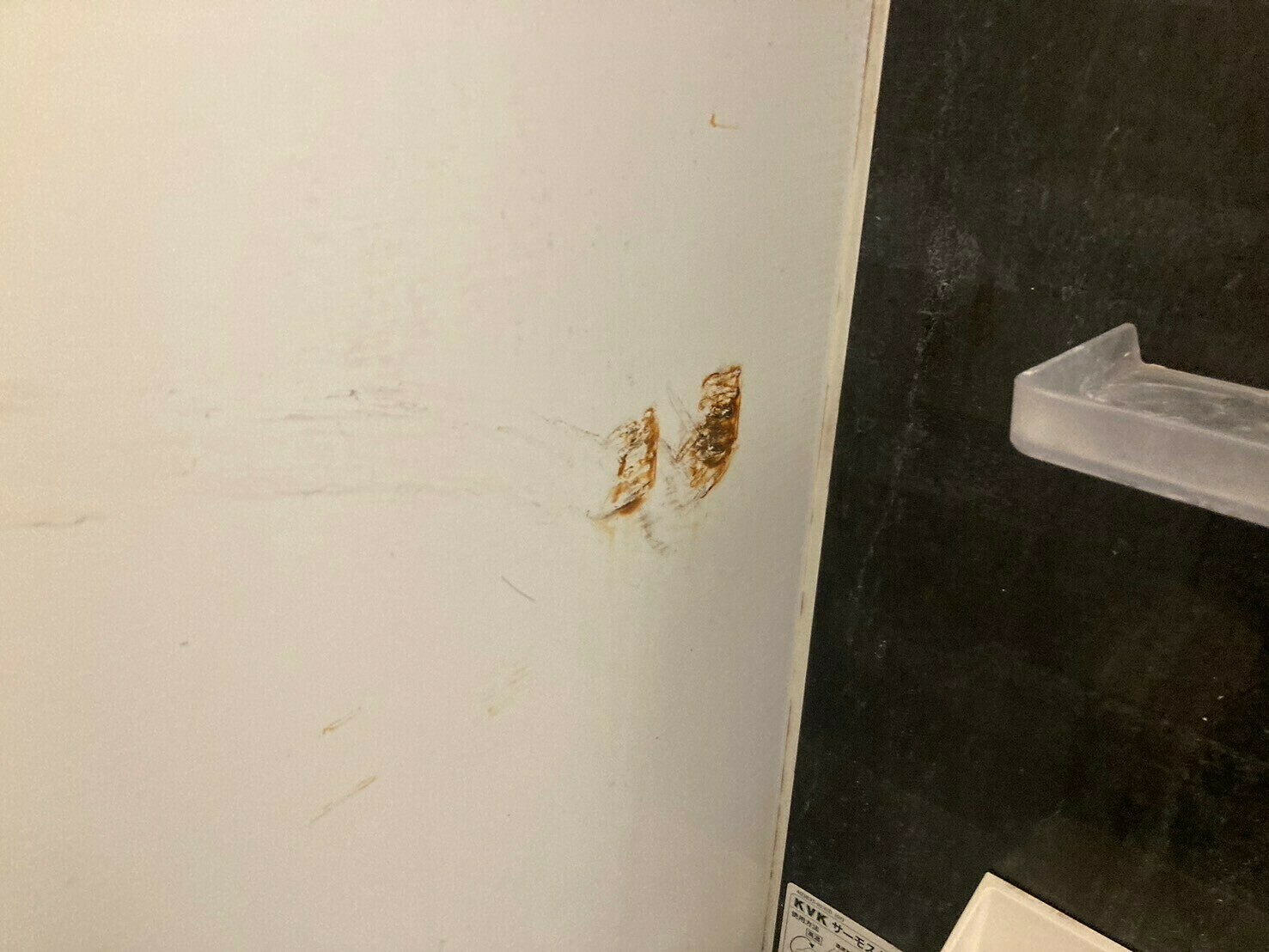 収納化粧板は石鹼カス汚れや物を置いていた跡が残っていますね😱