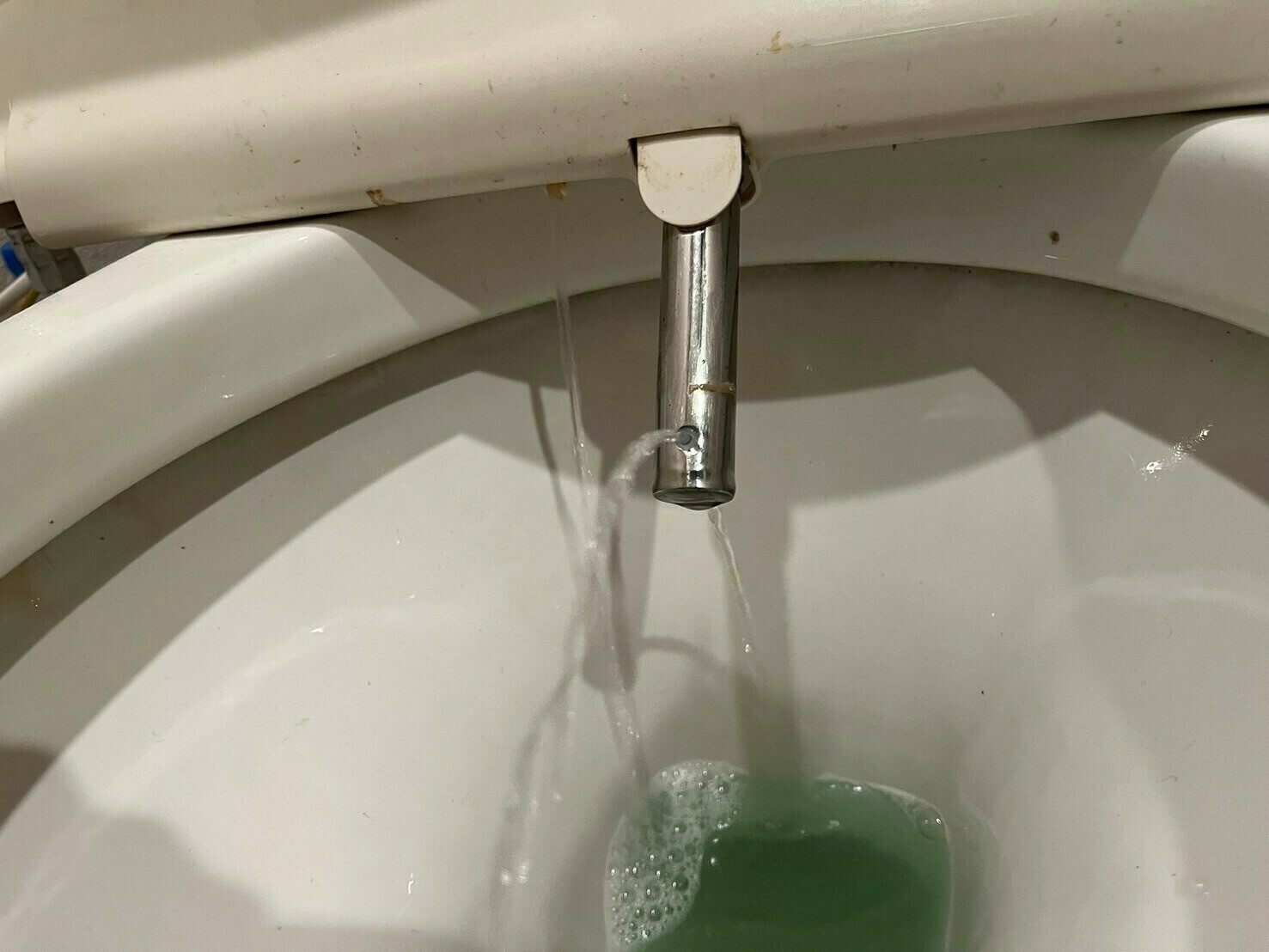 トイレのノズルにも、糞尿汚れがついていますね💦