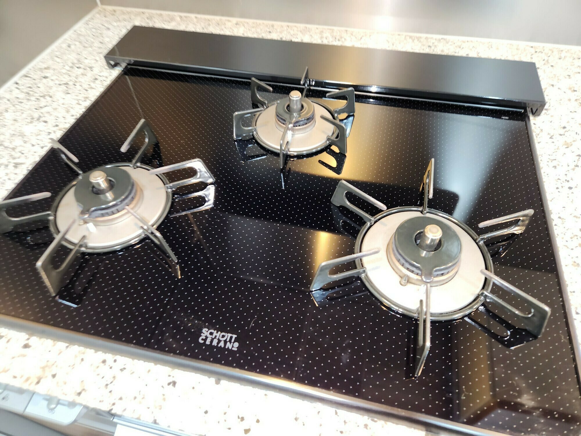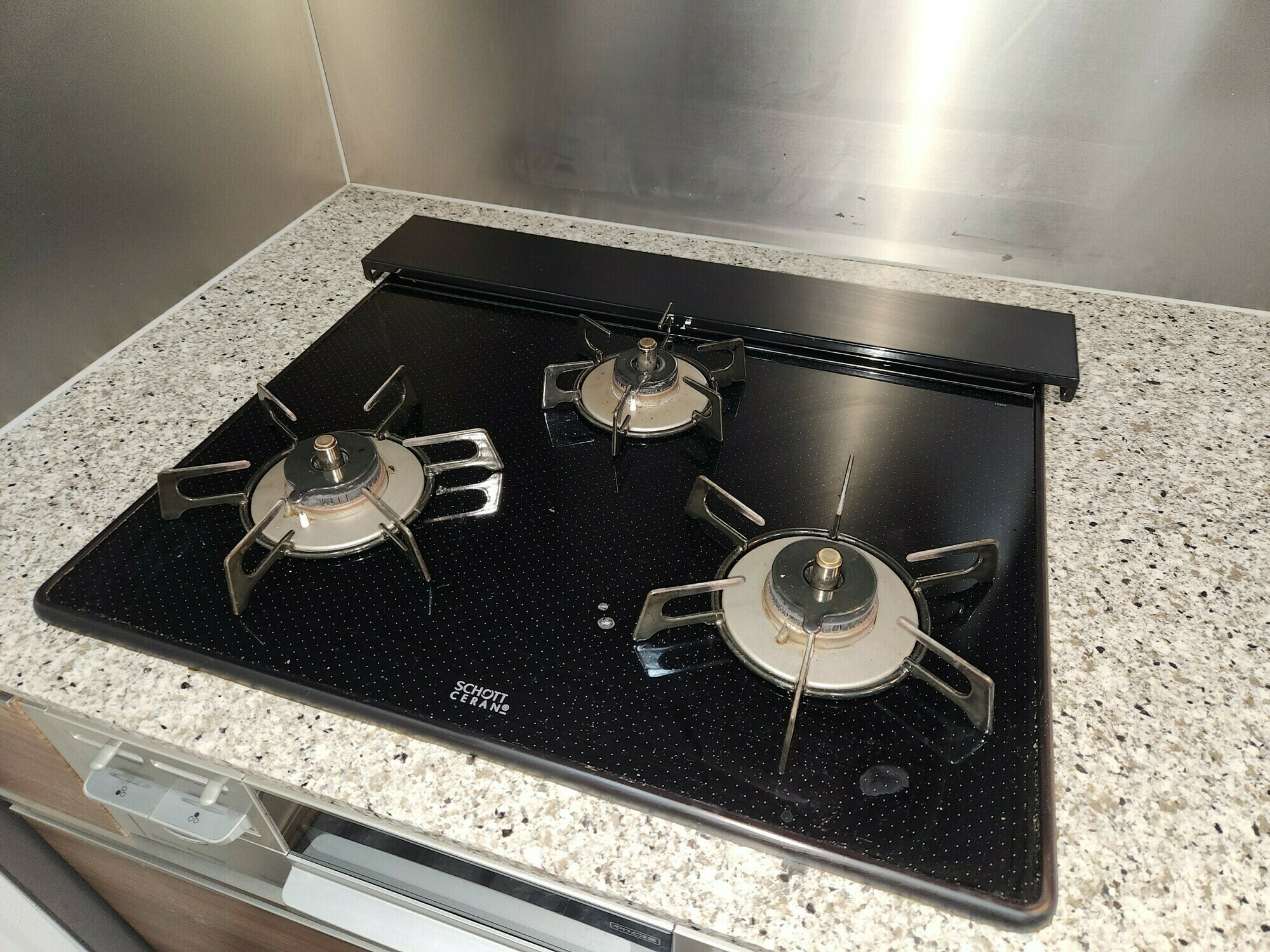ガスコンロのガラストップについていた吹きこぼれ汚れはなくなり、ピカピカ綺麗になりました😆