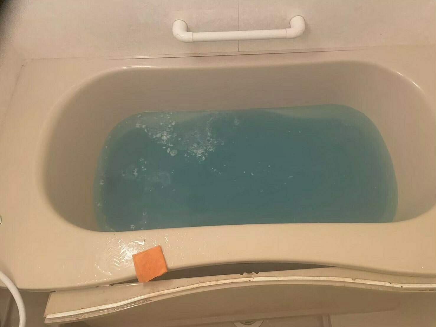 サムネイル画像にもあったこちらのバスタブ内の水ですが、風呂釜配管内についている汚れが洗浄によってバスタブ内に出てきました😱😱