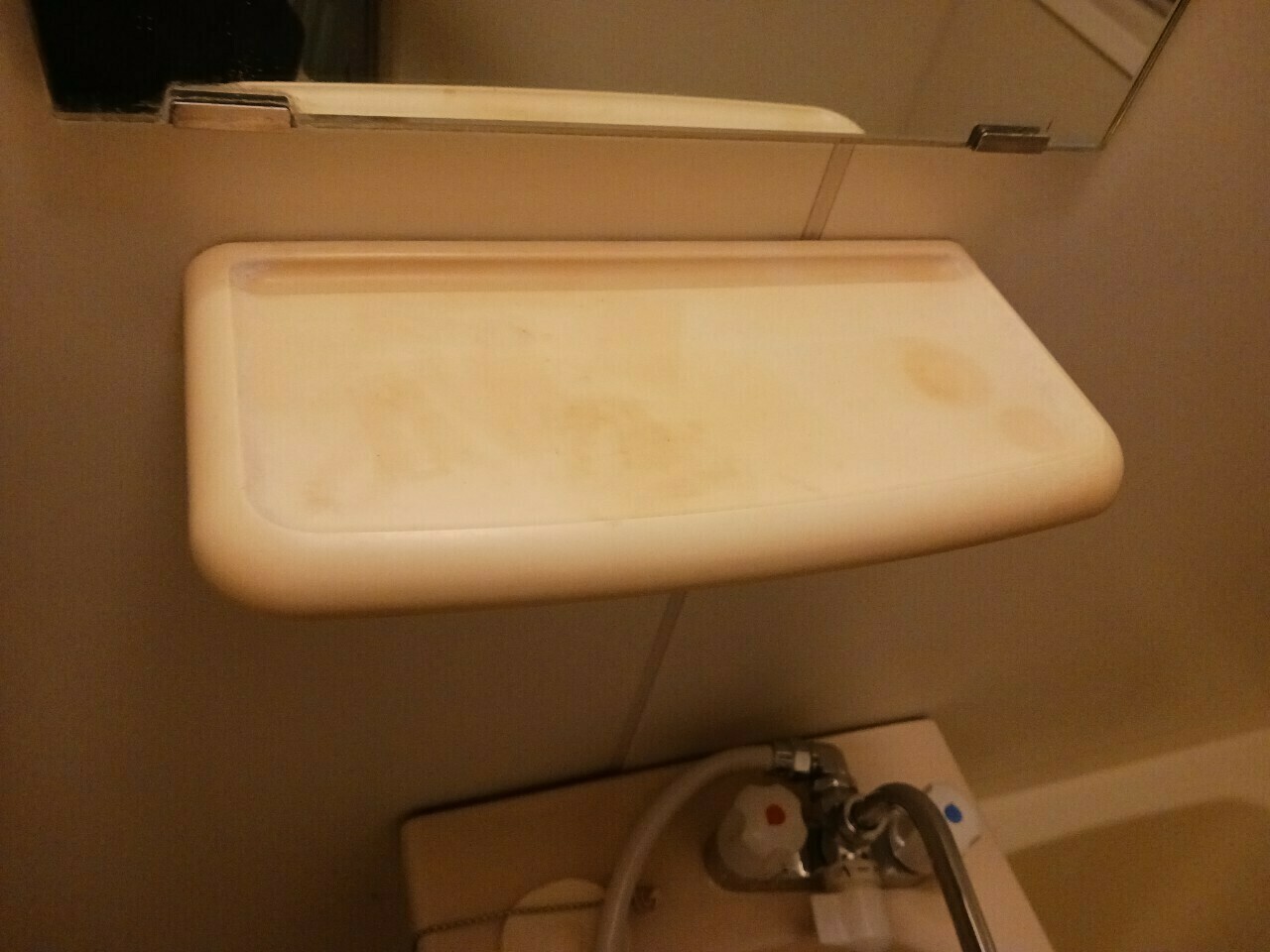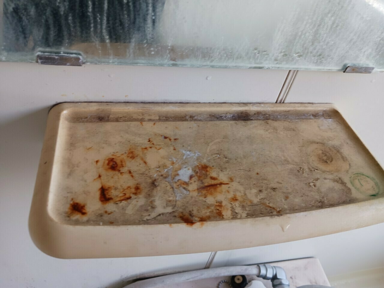鏡下のカウンターには物を置いていた跡や錆汚れがついています😵💫