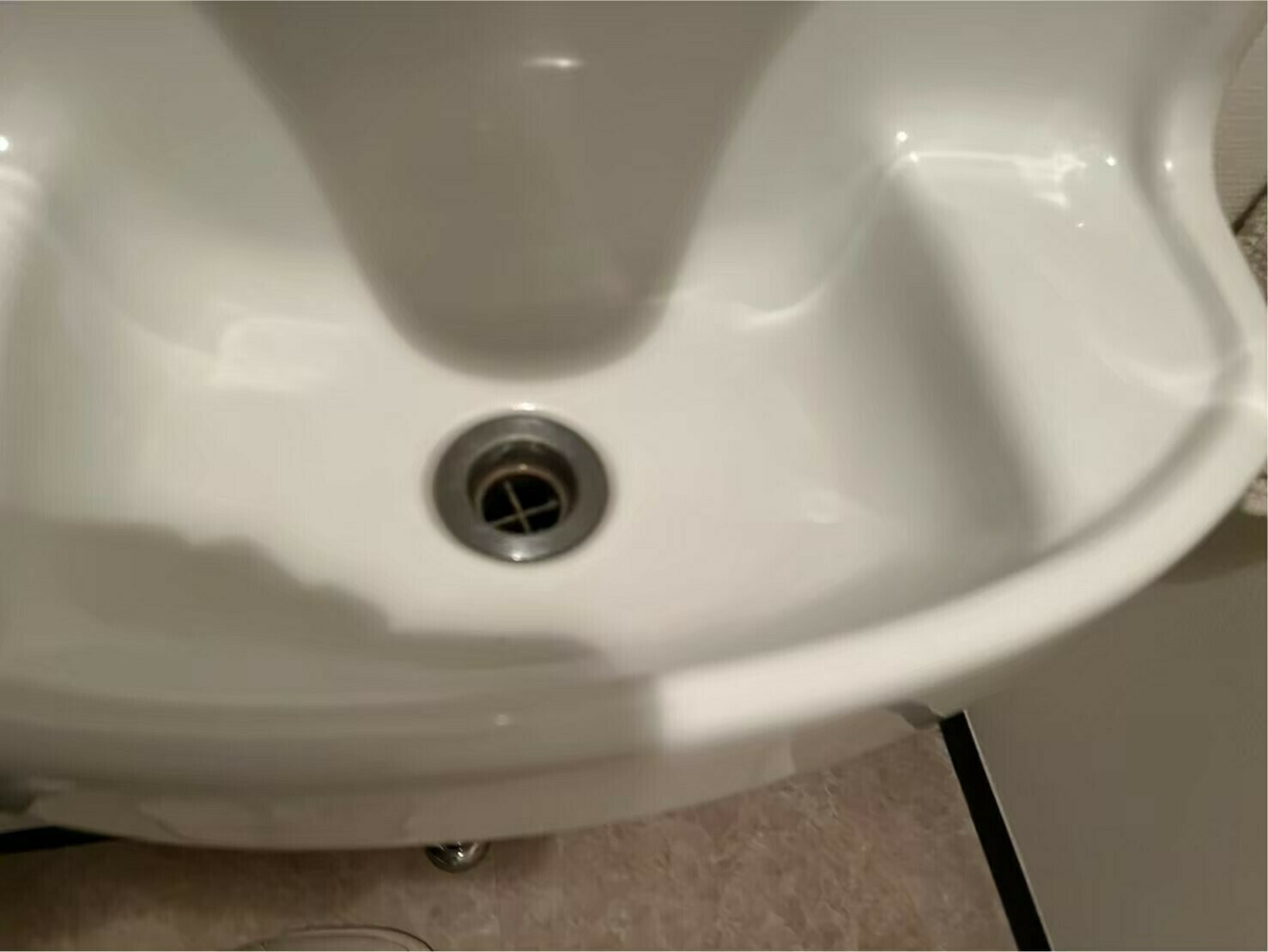 独立洗面台についていた水垢汚れは完全に落としきる事ができ、ツヤツヤ綺麗な洗面ボウルへと変身しました😸