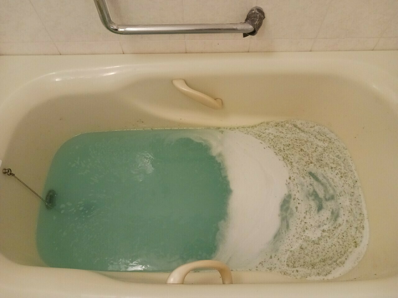 少し時間をおき、バスタブ内の汚水の変化があまり見られなくなり、汚れが完全に湧き出てこなくなったのを確認してから、バスタブ内に溜まった汚れとさよならします。