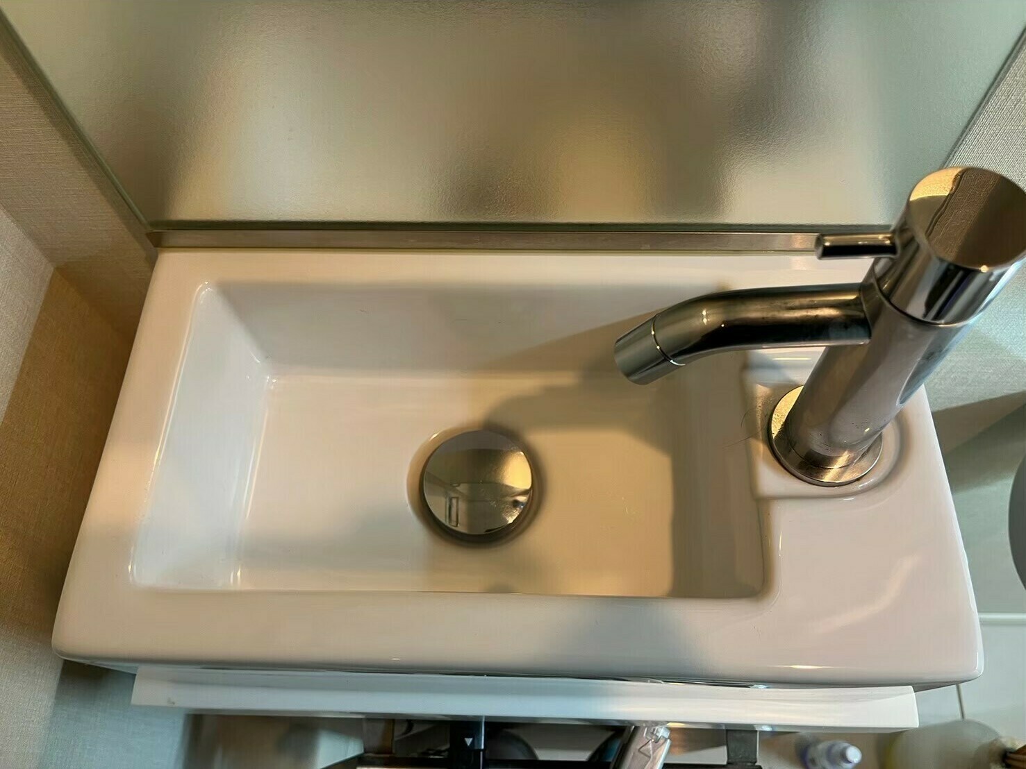 独立洗面台は、蛇口にウロコ汚れがついていますね💦